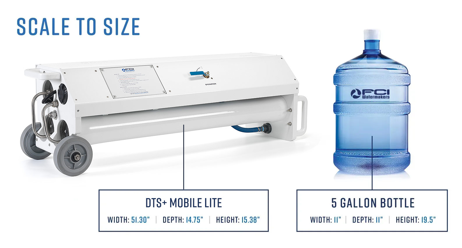 The FCI DTS+Mobile Lite harnesses the same reliable DTS+ technology to remove up to 99 % of total dissolved solids and deliver purified water as low as 5 PPM from any dockside or municipal source. Designed for users who need fast, spot‑free rinsing with reduced maintenance demands, the Lite offers fewer components and streamlined operation while protecting surfaces and finishes across boats, vehicles, windows, RVs, and more.
